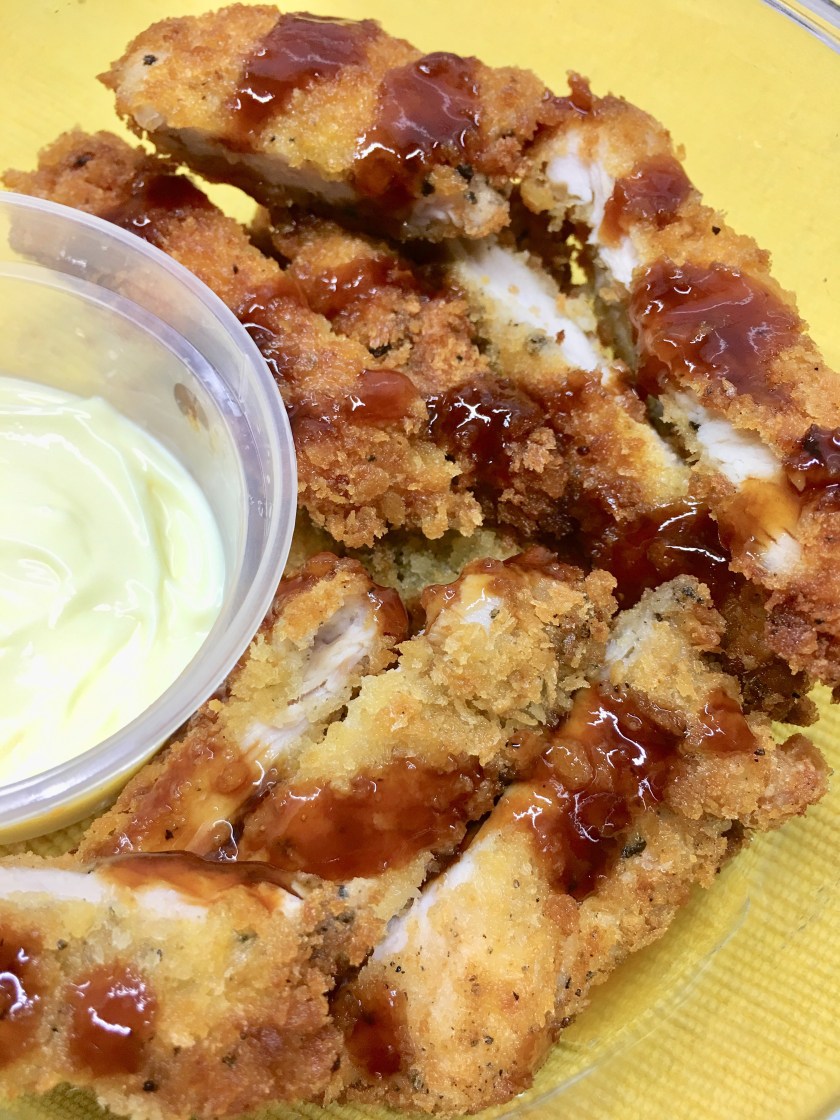 So instead of buying your toddler’s favorite chicken nuggets from a fast food or your local supermarket, why not make your own version – Japanese style! It’s actually fun to make, an activity that kids can join in to help plus the ingredients and steps are quite simple too. I surely had fun making AND eating it! LOL. This recipe below can also be followed if you’d like to make Pork Tonkatsu as the steps are the same . Serve it hot and crispy with a bowl of rice, some healthy steamed vegetables on the side like broccoli or baby corn and drizzle with some Tonkatsu sauce or Japanese mayo. Home cooked easy meals level up! 🙂