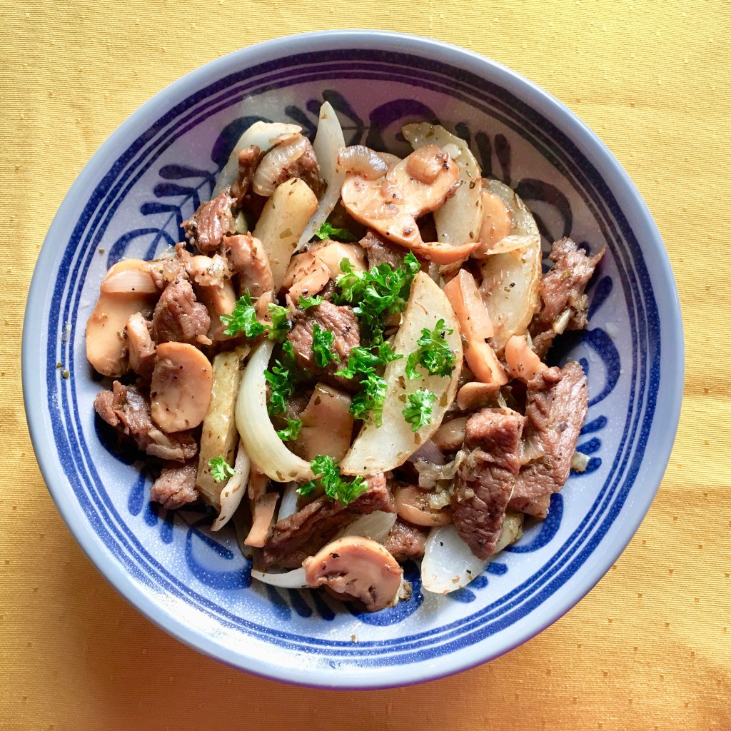 Garlic Butter Steak Bites with Potatoes and Oregano